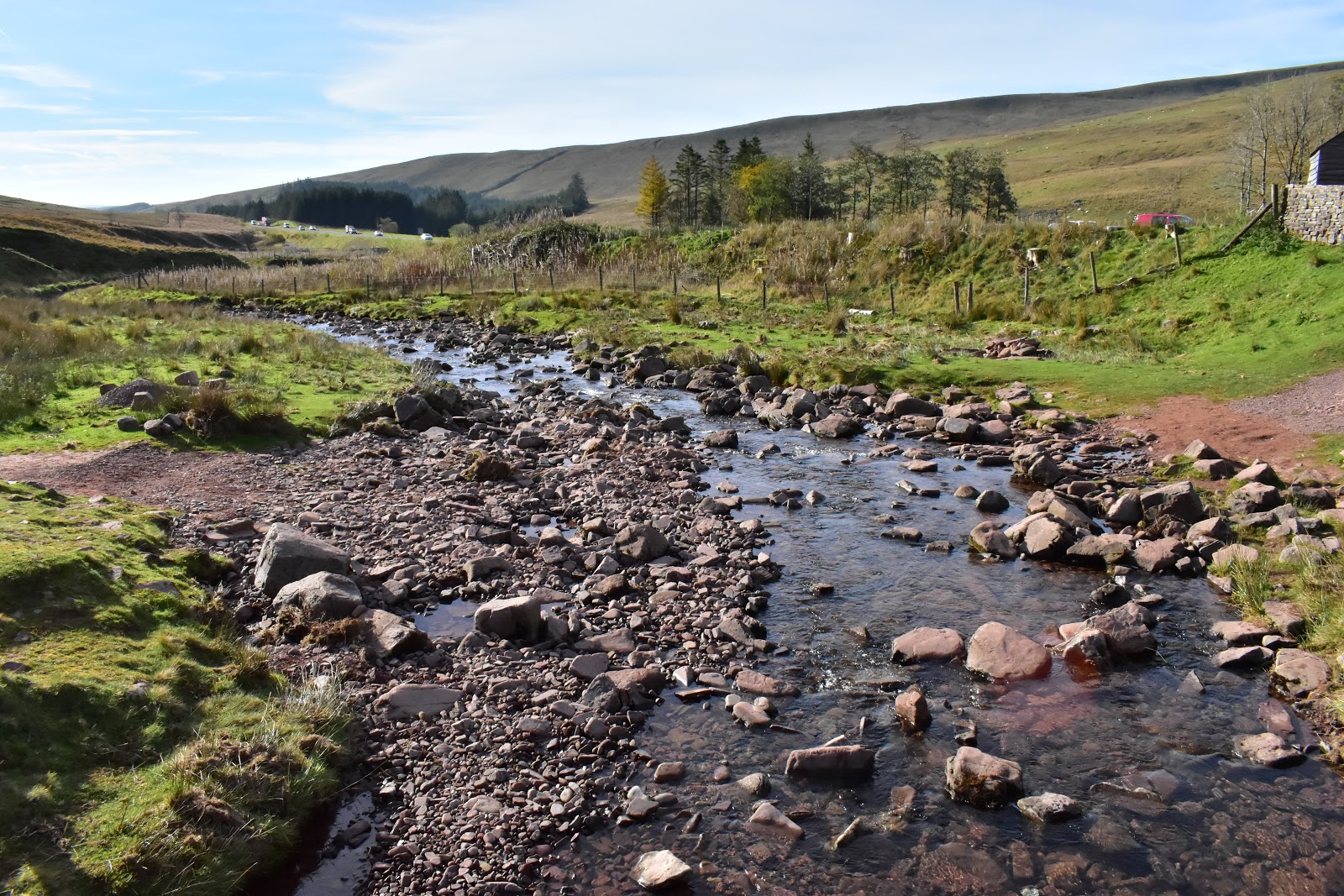 A túra a parkoló déli oldalán kezdődik. Induljunk el a parkolóból induló ösvényen, pár lépés múlva lesz egy fakapu, menjünk át rajta, majd keljünk át a fából készült gyaloghídon a folyó felett. Innen kövessük felfelé a Bwlch Duwynt felé vezető utat.